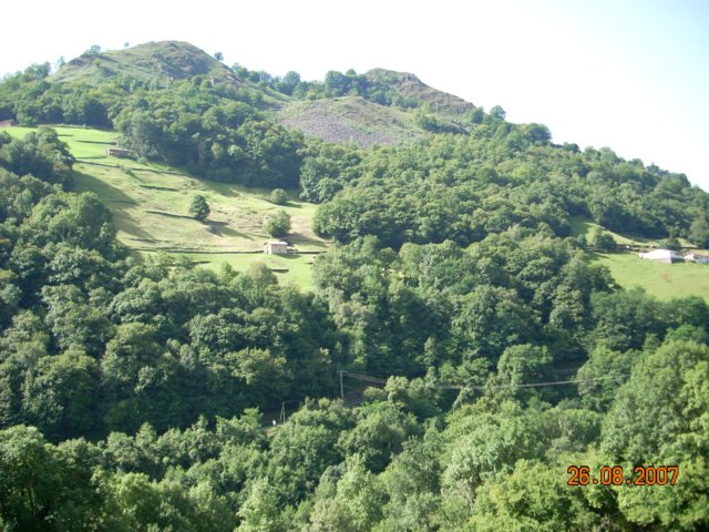 Eso, un testigo de que estabamos en Francia, un palo con señales. Lo que se avecinaba no lo imaginabamos, estabamos cerca del final de la travesía y ya no creíamos que nada nos sorprendería. Salimos tarde, teníamos 71 km por delante. Aquó nos comemos la manzana y ahí al frente, a unos 15 metros, donde acaba la valla, comenzó el calvario. Yo lo pasé bastante justito e intentando guardar fuerzas, Manolo sufrió un poco más, aunque le gusta caminar. Creo que la media era del 18-20% de pendiente durante unos 5 km.