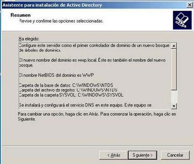 Por defecto indica las rutas donde guardará la Bd y el registro de AD. Podemos elegir otras.